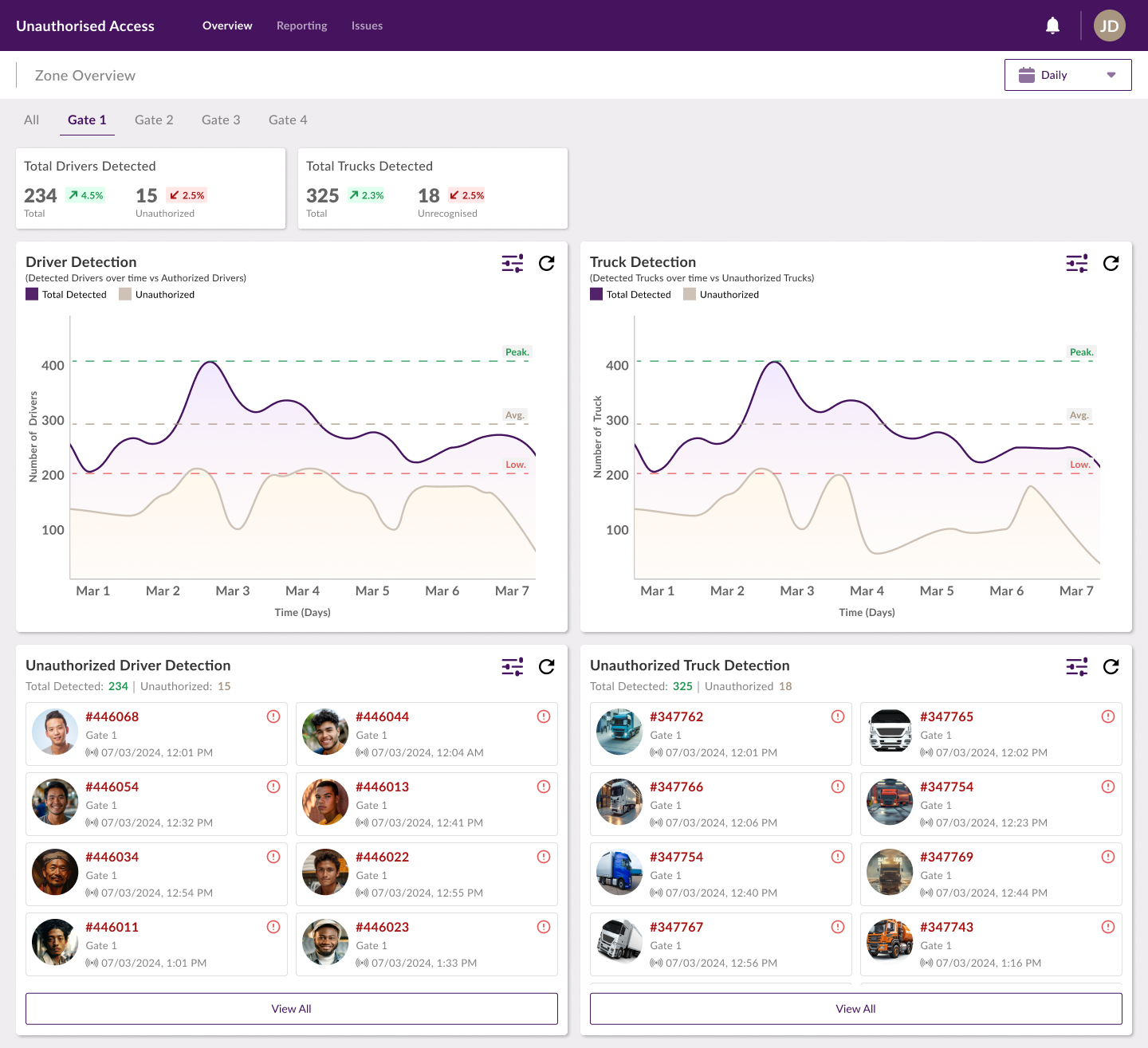 Leveraging edge computing, we achieve rapid and precise identification of workforce, making optimal use of the existing camera infrastructure.
