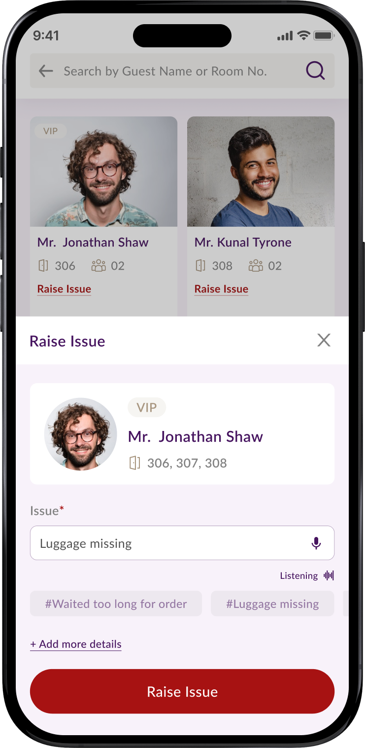 (incident reporting by voice and text) - Personalised Guest Insights: + Automated Push