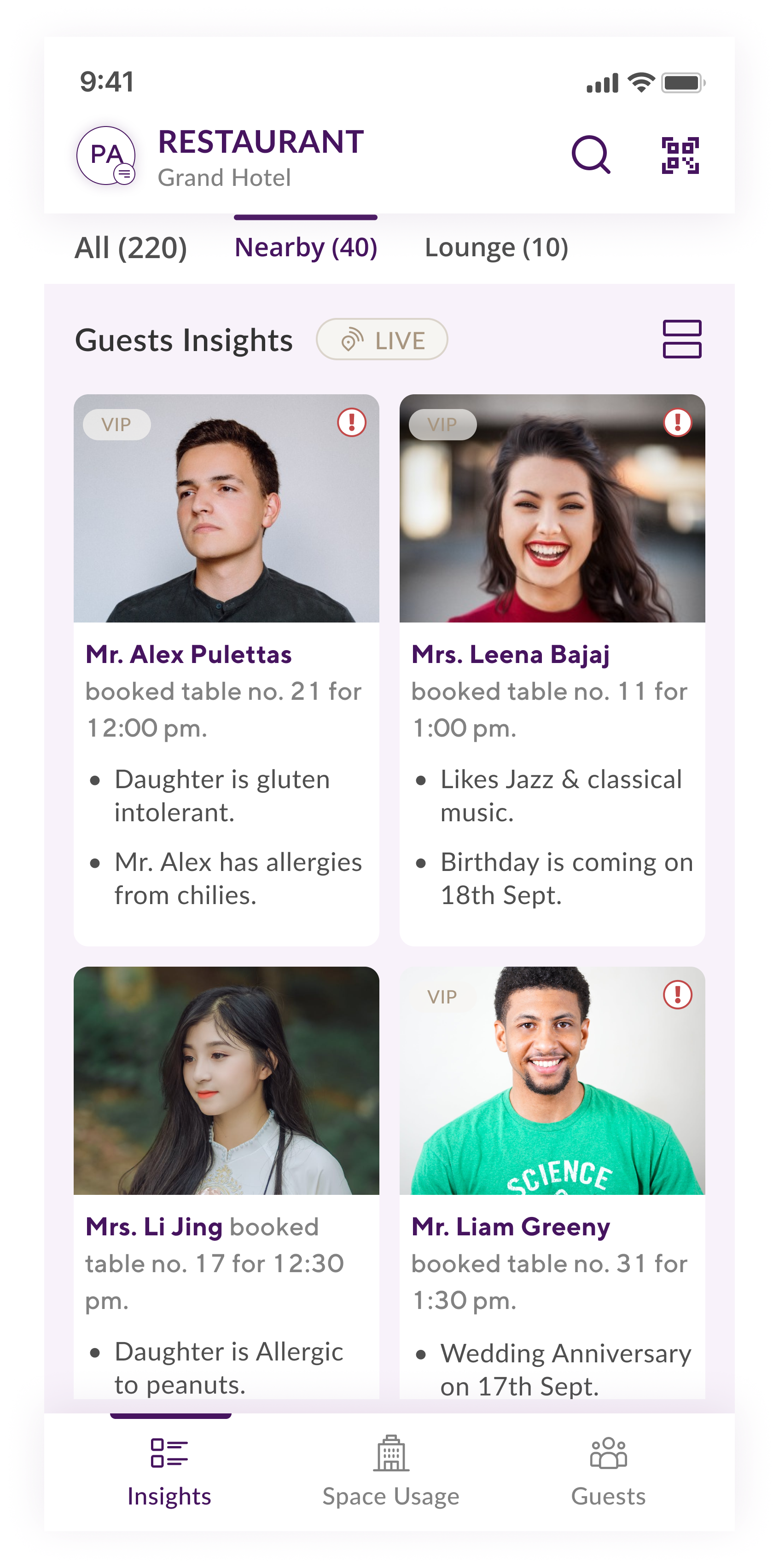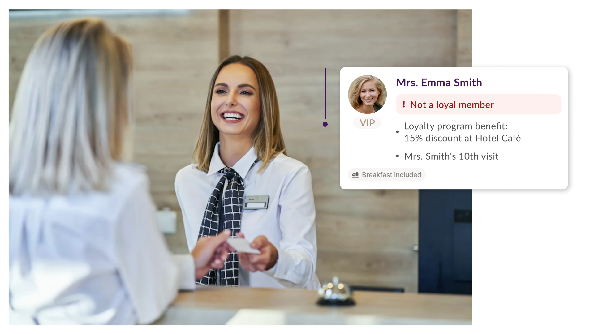 Additionally, staff receive guest names via voice alerts, along with a summary of each guest's profile and insights on their devices. This streamlined process allows staff to quickly access important details, enabling them to spend less time on computers and more time building meaningful relationships.